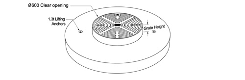 | 232823 | 1500WELL COVER Ø1700×150 w/Ø600 CI GRT RSD40 | 783kg | |